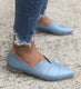 Ballerina Flat, in leather, with memory foam, handmade, synthetic sole, with memory foam, invisible heel with 1 inch height, triangular toe, dark blue